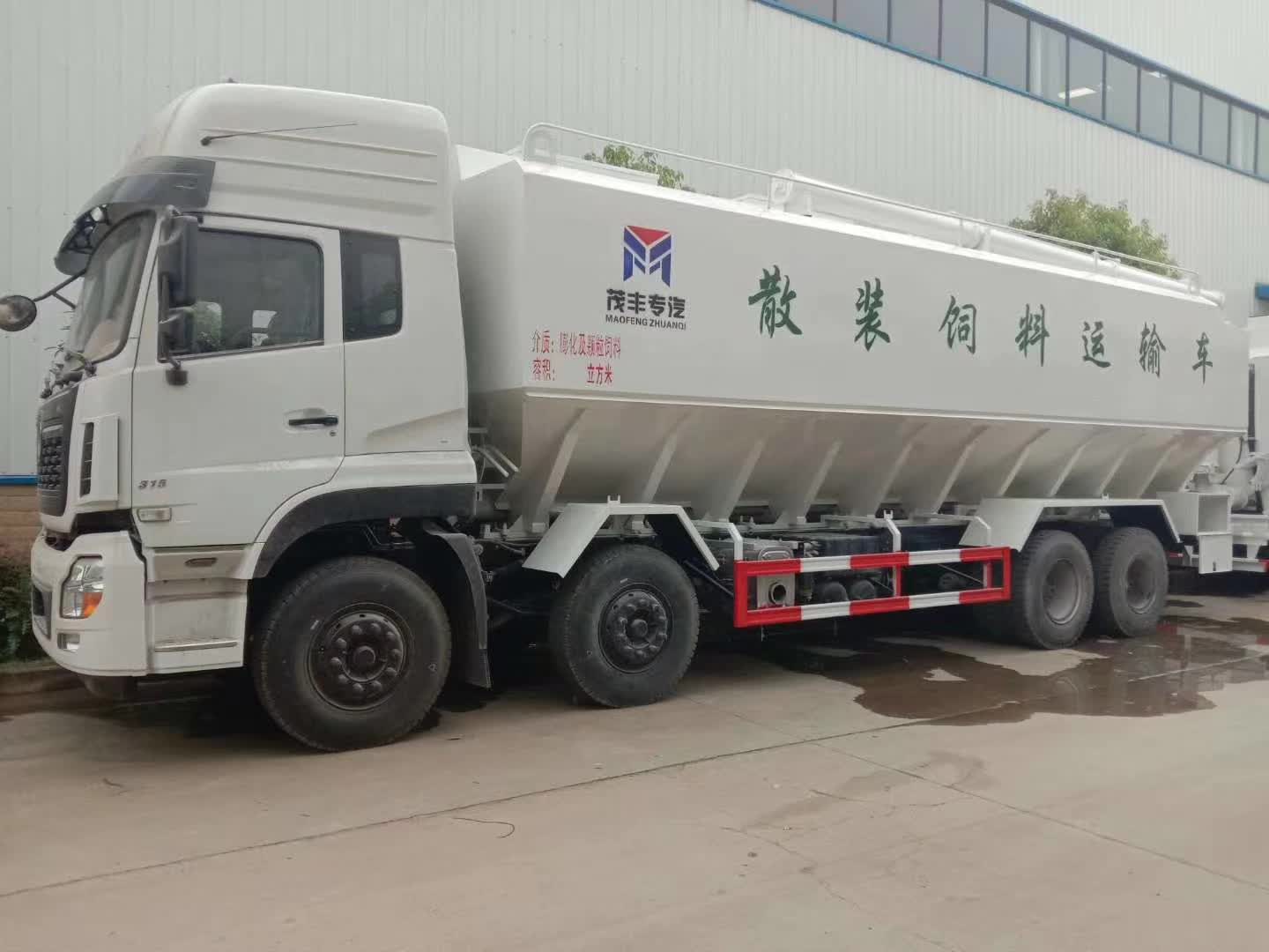 我公司專業(yè)生產(chǎn)散裝飼料廠家,有多款車型,東風(fēng)福瑞卡12方散裝飼料車、東風(fēng)天錦22方飼料車運(yùn)輸車,東風(fēng)天錦小三軸30方散裝飼料運(yùn)輸車、東風(fēng)天龍前四后八44方散裝飼料運(yùn)輸車。 散裝飼料車的優(yōu)勢(shì)散裝飼料車,散裝飼料罐在養(yǎng)殖行業(yè)越來越受歡迎了,在運(yùn)輸中可以幫助客戶解決很多問題,例如方便裝卸,節(jié)省成本,方便快捷。 一、方便快捷。上料不用人工,飼料廠直接機(jī)械上料;卸料直接用電動(dòng)(液壓)卸料,機(jī)械速度直達(dá)理想,還可分倉設(shè)計(jì),一次運(yùn)輸不同飼料,滿足多品種需求。 二、儲(chǔ)存無污染。與散裝飼料運(yùn)輸車配套的,有一個(gè)個(gè)自動(dòng)喂料系統(tǒng)的儲(chǔ)料塔,飼料直接打入料塔,場(chǎng)區(qū)設(shè)計(jì)可以讓散裝飼料運(yùn)輸車不用進(jìn)場(chǎng)就能完成卸料,這樣更減少了外來運(yùn)輸車所帶來的潛在污染問題,場(chǎng)區(qū)料塔完全封閉不會(huì)受到污染,儲(chǔ)料更有保障。不用再裝卸、拆分、攪拌和喂食,而可以被自動(dòng)定時(shí)定量地送進(jìn)溝槽。 三、經(jīng)濟(jì)實(shí)用。包裝不用袋,每噸可節(jié)約成本30元;不用人工上下料,每噸節(jié)約成本10元左右,對(duì)于年出欄6000頭商品豬的企業(yè)來說,每年可以節(jié)約成本約10萬多元,這是看得見摸得著實(shí)實(shí)在在的效益。 散裝飼料特點(diǎn) 1、散裝運(yùn)輸飼料比包裝成袋運(yùn)輸不但節(jié)省勞動(dòng)力,而且成本較低, 但要求畜禽場(chǎng)具備盛裝飼料的貯料罐。 2、散裝飼料在罐體內(nèi)密封輸送,減少損失,保證質(zhì)量,避免污染。可連續(xù)作業(yè),大大提高生產(chǎn)。 3、全自動(dòng)液壓系統(tǒng),操作簡單使用方便。底盤采用載重汽車底盤,其它部件,齒輪泵,液壓馬達(dá)等也系標(biāo)準(zhǔn)化,進(jìn)口液壓件國產(chǎn)化,對(duì)維修保養(yǎng)提供了方便條件。 4、罐體內(nèi)可加裝分倉,可同時(shí)運(yùn)輸多種不同類的飼料或膨化介質(zhì)。 散裝飼料車分類: 。1) 按卸料方式可分為:全自動(dòng)液壓卸料散裝飼料車和電動(dòng)卸料散裝飼料車。 。2) 按車輛形式可分為:整車式散裝飼料車和半掛式散裝飼料車。 5、部件標(biāo)準(zhǔn)化,容易維修保養(yǎng)。我廠生產(chǎn)的散裝飼料運(yùn)輸車有整車式和獨(dú)立罐式(可用于相應(yīng)載貨車運(yùn)輸)。按驅(qū)動(dòng)形式分有L電動(dòng)卸料散裝飼料車、全液壓卸料散裝飼料車和氣卸散裝飼料車?蔀榭蛻籼峁└鞣N噸位的飼料運(yùn)輸車定制化服務(wù)