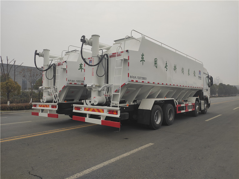 4、罐體內(nèi)可加裝分倉,可同時(shí)運(yùn)輸多種不同類的飼料或膨化介質(zhì),強(qiáng)烈建議廣大養(yǎng)殖行業(yè),畜禽行業(yè),畜禽飼養(yǎng)場,小型養(yǎng)殖場、飼料廠配備此類車輛。